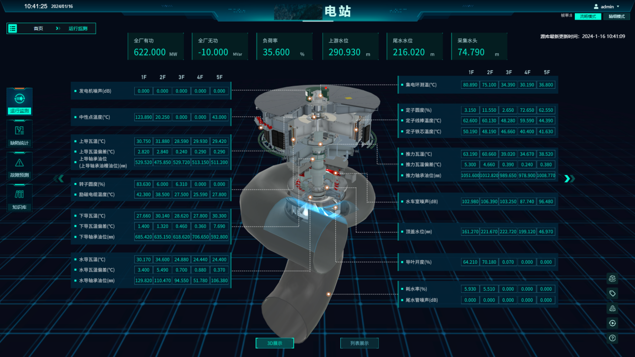 “在数字科技的支撑下,该系统有了迎峰度夏的优秀案例。比如当天16:15该系统发出‘1号机组下导油位上涨’报警,而普通监控系统于次日01:18才发出油混水报警。”谢军说,“该系统报警时间比普通监控报警提前9个小时,相关人员及时在低负荷时段更换渗漏的油冷器,避免了下导轴承冷却器持续渗漏后将可能导致油温、瓦温异常升高的非停事件,预估为迎峰度夏争取了20小时发电时间。”