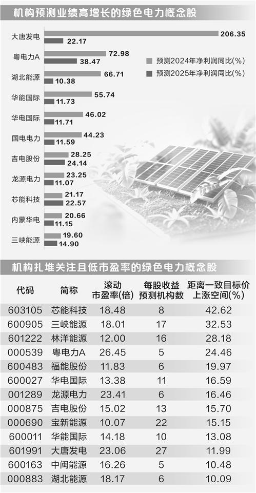 A股市场中,布局绿色电力的公司众多,数据宝以中证绿色电力指数成份股为基础,统计出低市盈率且机构关注度高的个股。截至7月9日,滚动市盈率低于30倍,且被5家及以上券商给予积极型(含买入、增持、强烈推荐等)评级的绿色电力概念股有22只。