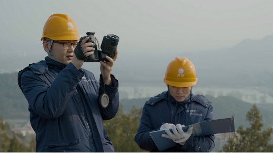 国网北京密云供电公司输电运维班齐帅、吴琼对重点线路开展测温工作,保障线路安全稳定运行。(林一轩/摄)