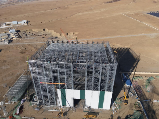 1月17日,世界海拔最高、净空尺寸最大、综合试验能力最强的西藏高海拔特高压试验大厅屋面桁架整体提升完毕,标志着试验大厅钢结构全面封顶,为屏蔽施工及后续设备进场奠定了坚实的基础。