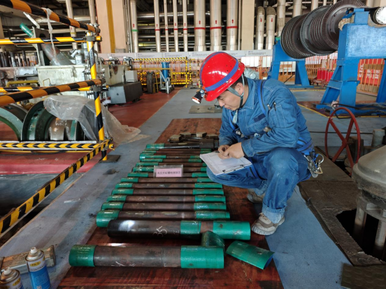 国网甘肃电科院技术人员王晨山正在开展高压外缸螺栓宏观检查工作