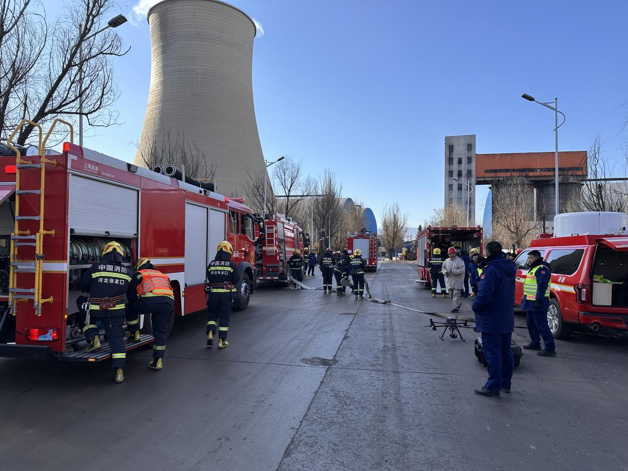 张家口发电公司开展保两会消防演练,为电力安全稳定供应筑牢坚实屏障。刘畅/摄