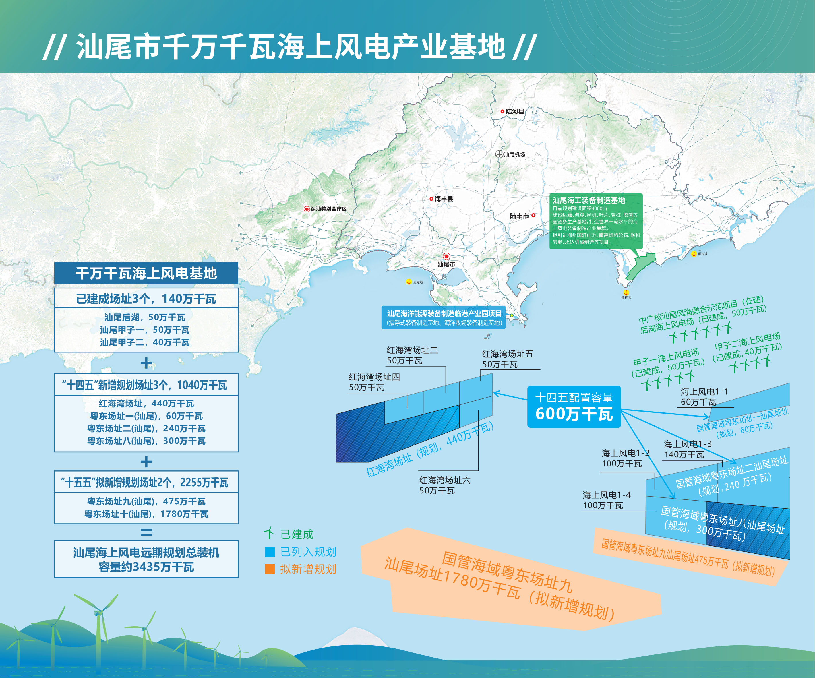 第四,产业体系完备。一方面是海工装备产业链齐全,有利于促进海上风电平价开发,加速打造产业创新高地。近年来,汕尾以海工装备制造基地为依托,围绕海上风电产业链进行“建链、补链、延链、强链”,大力开展招商引资,全力打造产业链关联度大、辐射带动力强的海工装备制造产业集群。截至目前,海工基地一期已引进入驻了中广核新能源、中山明阳智能、江苏中天科技、青岛天能重工等一批链主或头部企业,明阳园区叶片和整机生产、中天园区智能电网、天能重工园区等项目相继建成投产。现阶段,正推进建设海工基地水工码头、护岸等生产生活配套设施。海工基地二期已签约引进了江苏中车电机、惠柏新材料、恒明盛电缆等企业,洽谈落户企业还有10多家,涵盖主机、叶片、海缆等生产环节,是全省产业链条最为齐全的海工装备制造基地之一,汕尾海工装备制造产业的迅猛发展,有利于促进深远海海上风电的平价开发,打造成为产业链最全、技术最先进的海工装备制造产业集群。另一方面是大力发展新型能源,有利于促进石化新材料产业绿色低碳发展。近年来,汕尾积极推进汕尾新材料产业园规划建设,致力打造特色化、高端化和绿色化的石化新材料生产基地。支持汕尾发展海上风电等清洁能源产业,可促进带动石化新材料产业降低碳排放,实现绿色低碳发展。