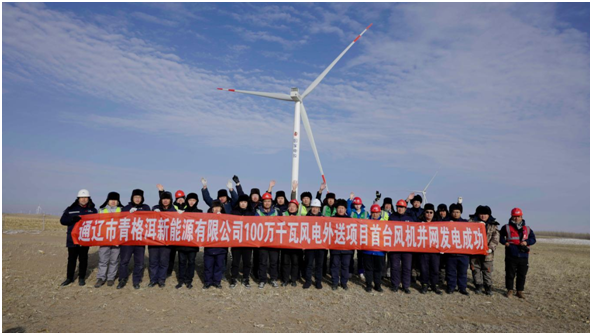 12月14日,国家第一批以沙漠、戈壁、荒漠地区为重点的大型风电、光伏基地建设项目,国家电投内蒙古公司投资建设的通辽100万千瓦风电外送项目实现首台风机并网发电,标志着该项目已具备发电和输电的基本条件。该项目所发电量将通过扎鲁特—青州特高压直流通道输送至山东电网消纳,实现“绿电入鲁”,助力实现“双碳”目标。