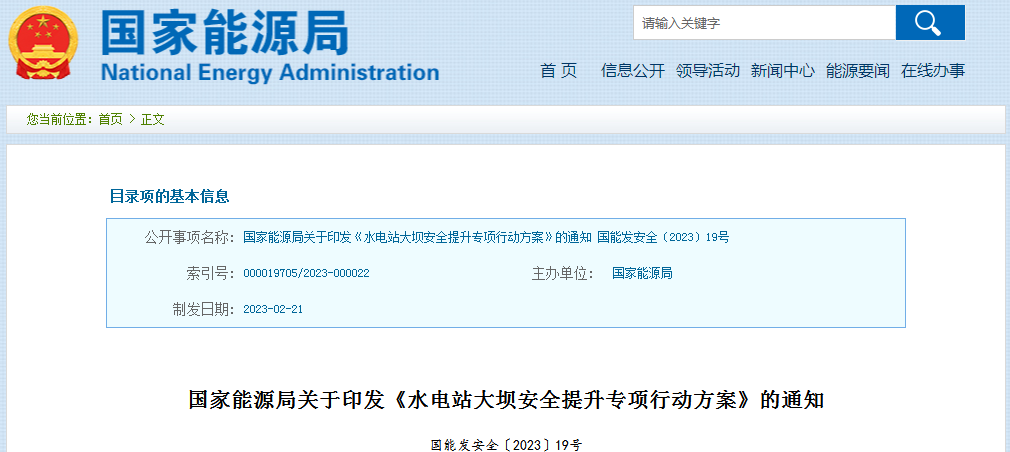 国家能源局关于印发《水电站大坝安全提升专项行动方案》的通知
