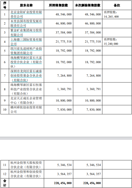 解禁数量超过1亿股的公司共9家,前三分别是顺控发展、国新能源(600617.SH)和四川黄金。