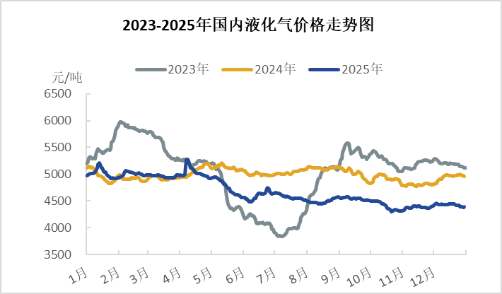2025年12月液化气期货主力合约收盘价大幅走低,本月收盘均价在4188元/吨,环比上月4308元/吨,大跌120元/吨或2.79%