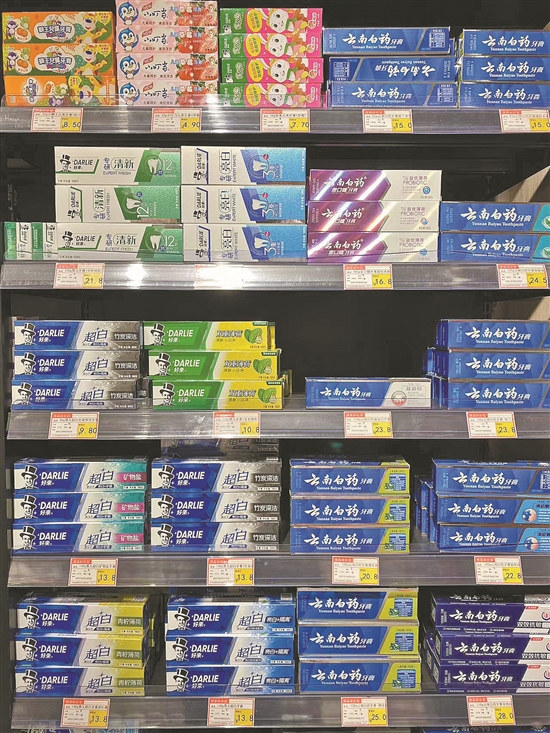 广州一家超市售卖的牙膏产品,宣传标语比较规范 詹淑真 摄