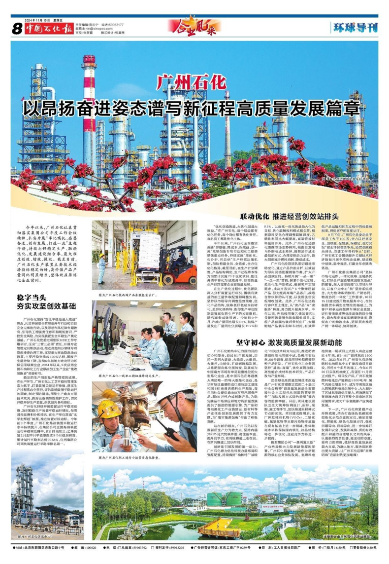 站在新的起点,广州石化以发展新质生产力为着力点,坚持内涵式和外延式发展并重,稳住基本盘,提升竞争力,在传统赛道上走在前、在新兴赛道上加快布局。