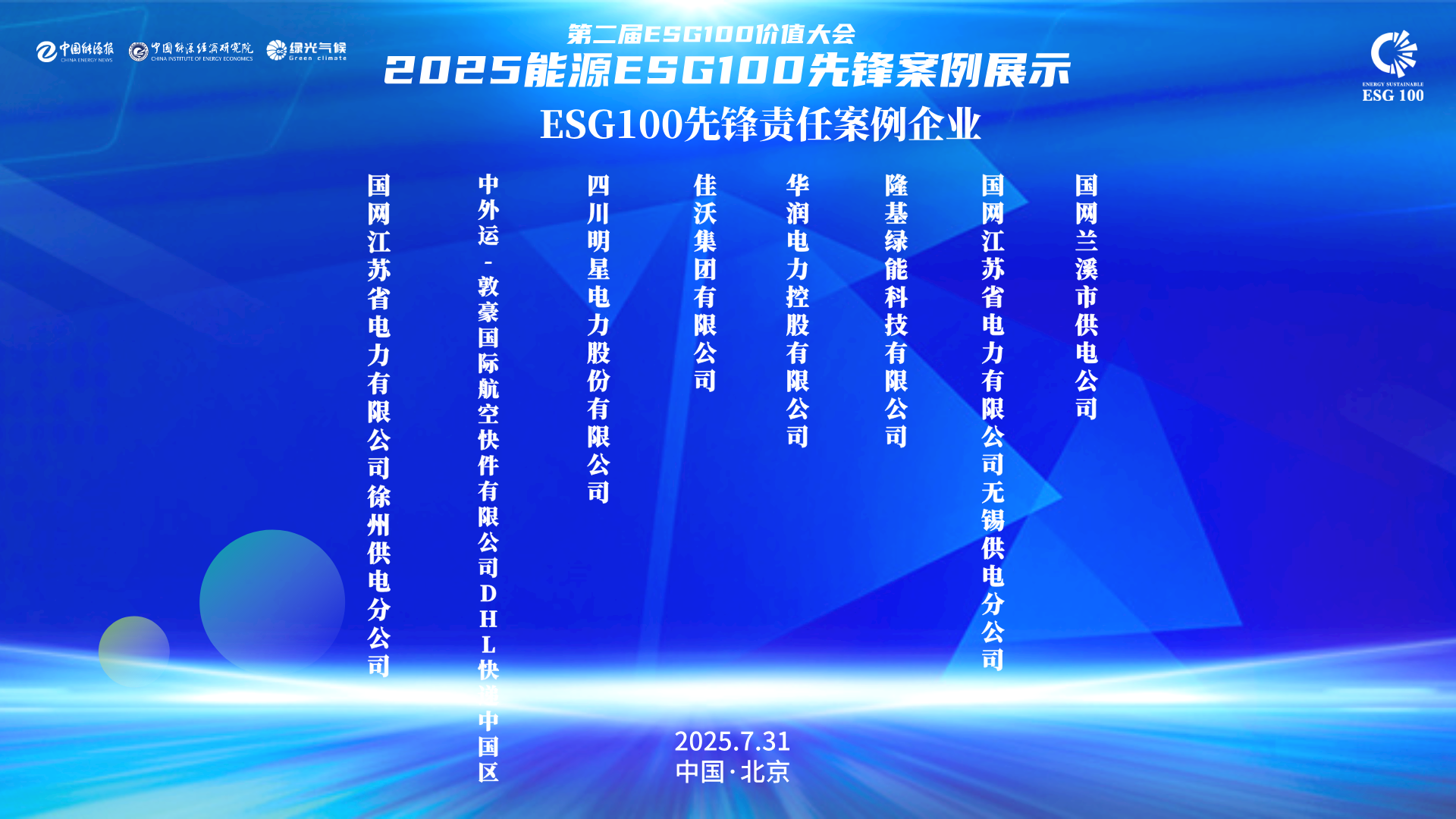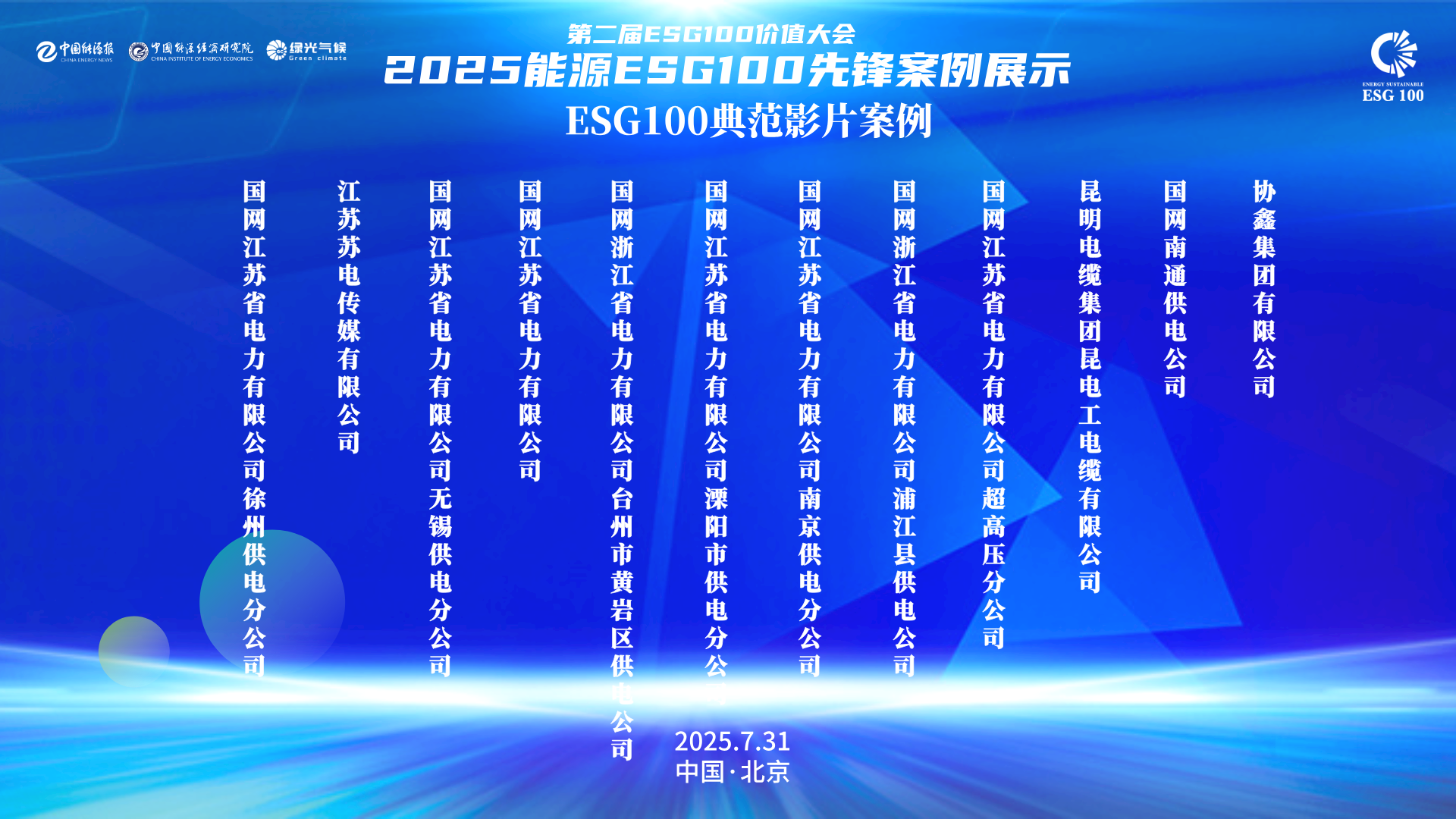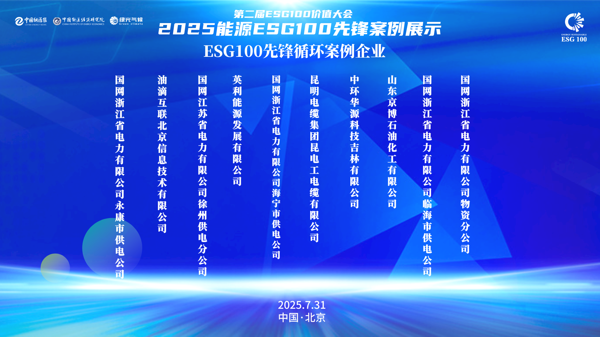 「ESG100价值大会」是中国ESG100价值平台的年度高级别影响力大会。大会通过每年征集以能源为核心的企业的优秀ESG实践案例,发现和表彰企业在应对气候变化与净零转型中的积极行动,特别优秀的典范案例推荐至「全球顶尖可持续发展案例数据库」,建立正面清单机制,助力企业快速融入全球供应链和绿色品牌价值提升;举办国际化、高级别的产业论坛,促进全球产业高层对话与交流;组织闭门研讨、专题培训、投资路演等系列活动,促进产业链深度协同,为能源与关键产业的绿色化、数智化发展提供专业支撑。