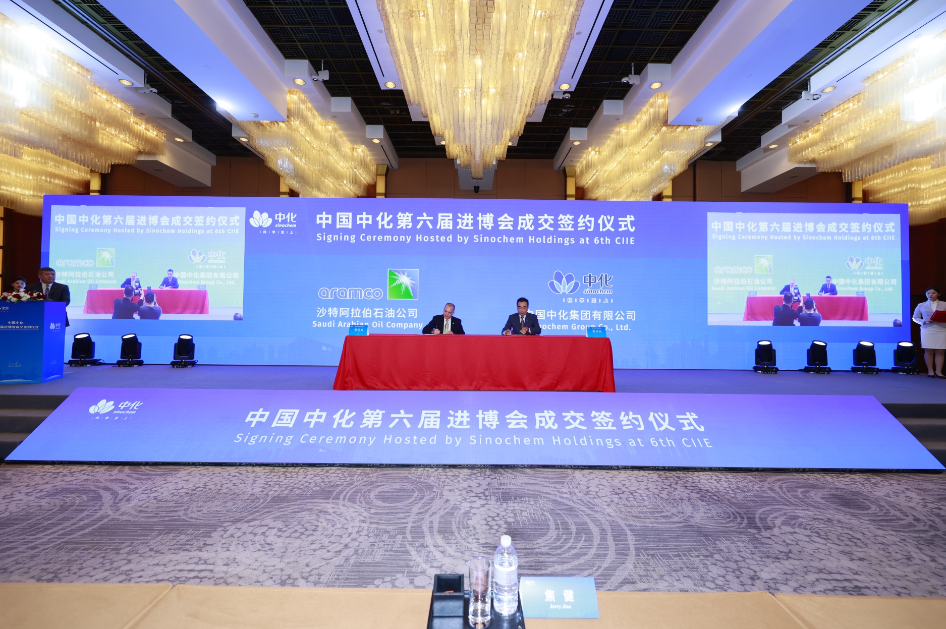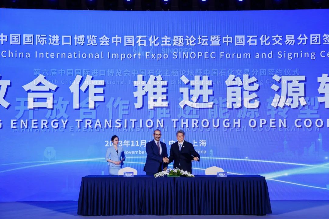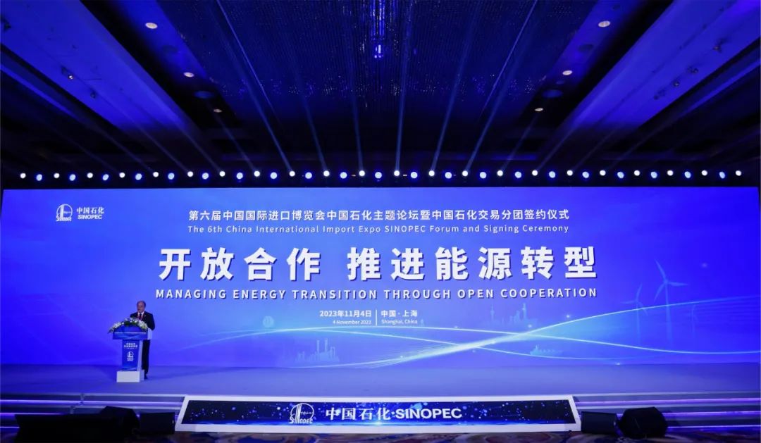 11月4日,第六届中国国际进口博览会中国石化主题论坛暨中国石化交易分团签约仪式在沪举办,论坛以“开放合作,推进能源转型”为主题,聚焦全球能源转型与能源合作,共议绿色低碳发展新路径。